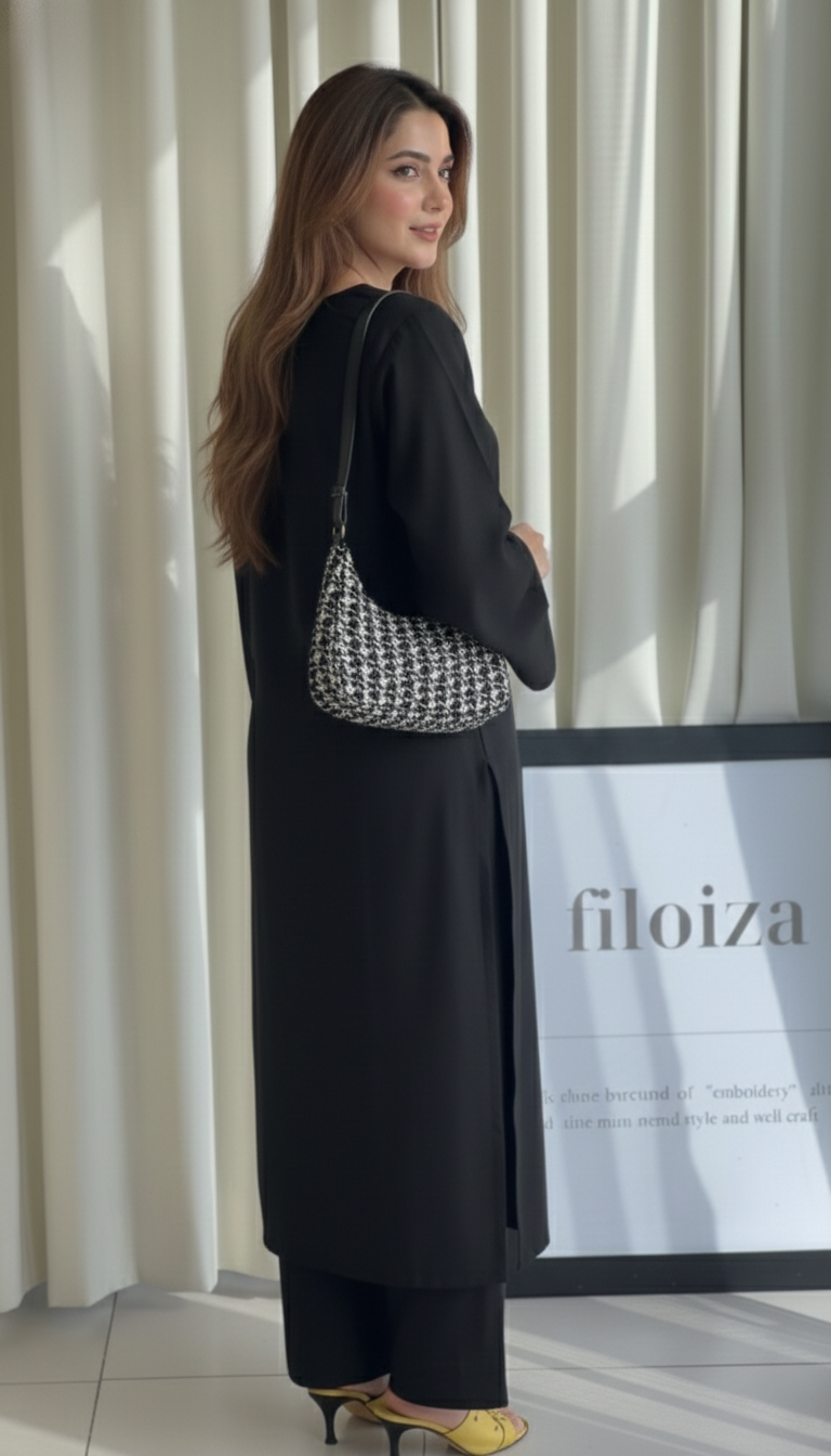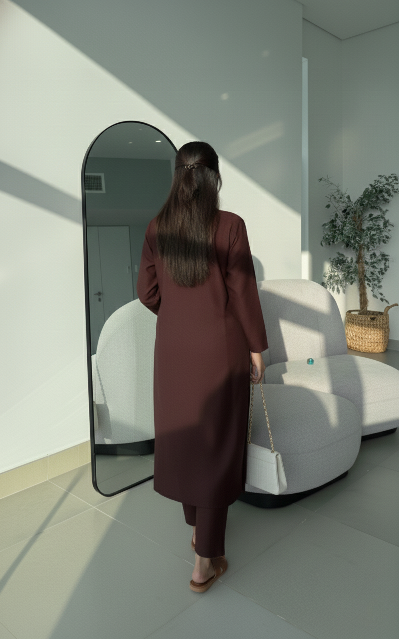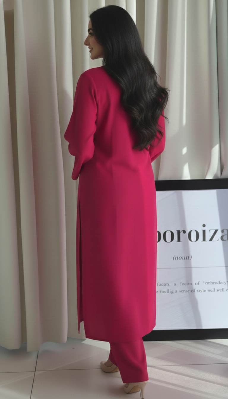 The "Tarini" Co-ord Set is the epitome of sophisticated minimalism. This essential set is designed to deliver a powerful, put-together look with zero effort, available in a variety of classic and rich solid colors.
