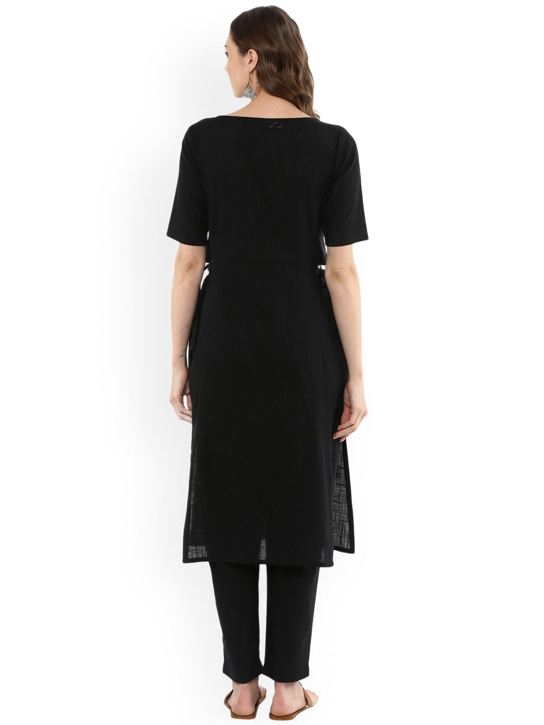- Top: Straight kurta | Boat neck | Half sleeves | Side tie-up accents